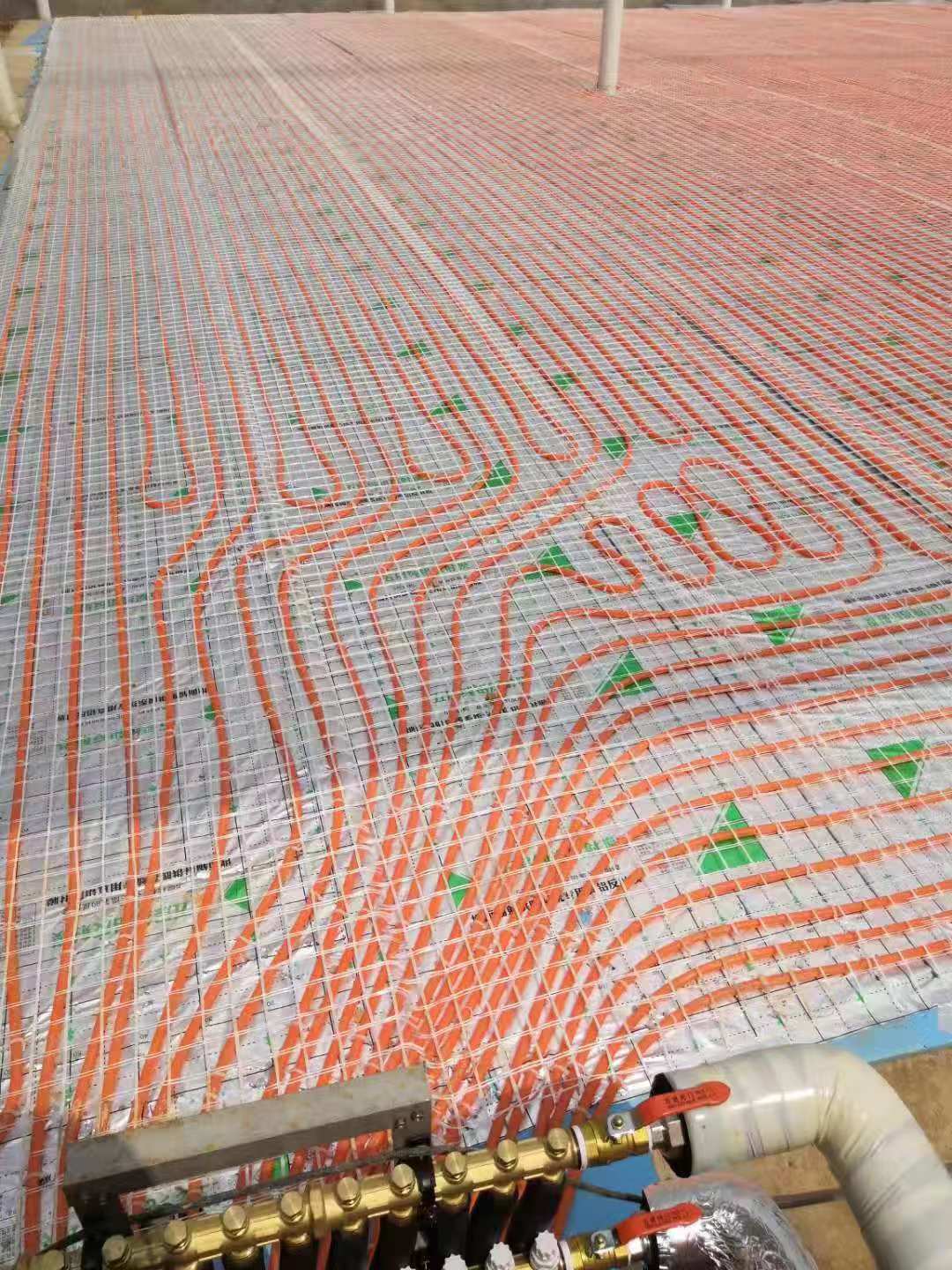 该项目为湖南省长沙市浏阳市拓腾出口烟花厂烘干原料车间空气能热泵采暖工程,系统采用两台10匹长菱牌空气能热泵,供暖270平方车间 ,地面辐射采用曼瑞德地暖管。
